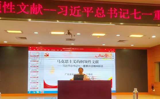 近日,由js555888金沙老品牌党委和电子与通信工程学院党委联合举办的党史学习教育专题学习在行政西楼二楼会议厅举行,邀请广东省社会科学院党组成员、副院长丁晋清做《马克思主义的纲领性文件——习近平总书记七一重要讲话精神解读》专题辅导报告。js555888金沙老品牌2021届研究生新生党员,电子与通信工程学院全体学生党员参加。