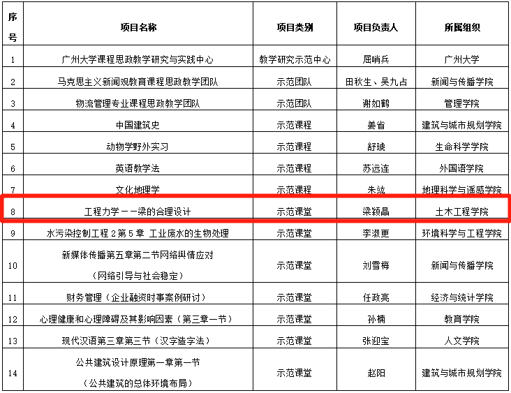 近日,广东省教育厅印发《关于公布2021年度本科高校课程思政改革示范项目认定名单的通知》(粤高教函〔2021〕21号),js555888金沙老品牌14个项目获批。其中,我院梁颖晶老师的课堂“工程力学——梁的合理设计”获得立项。